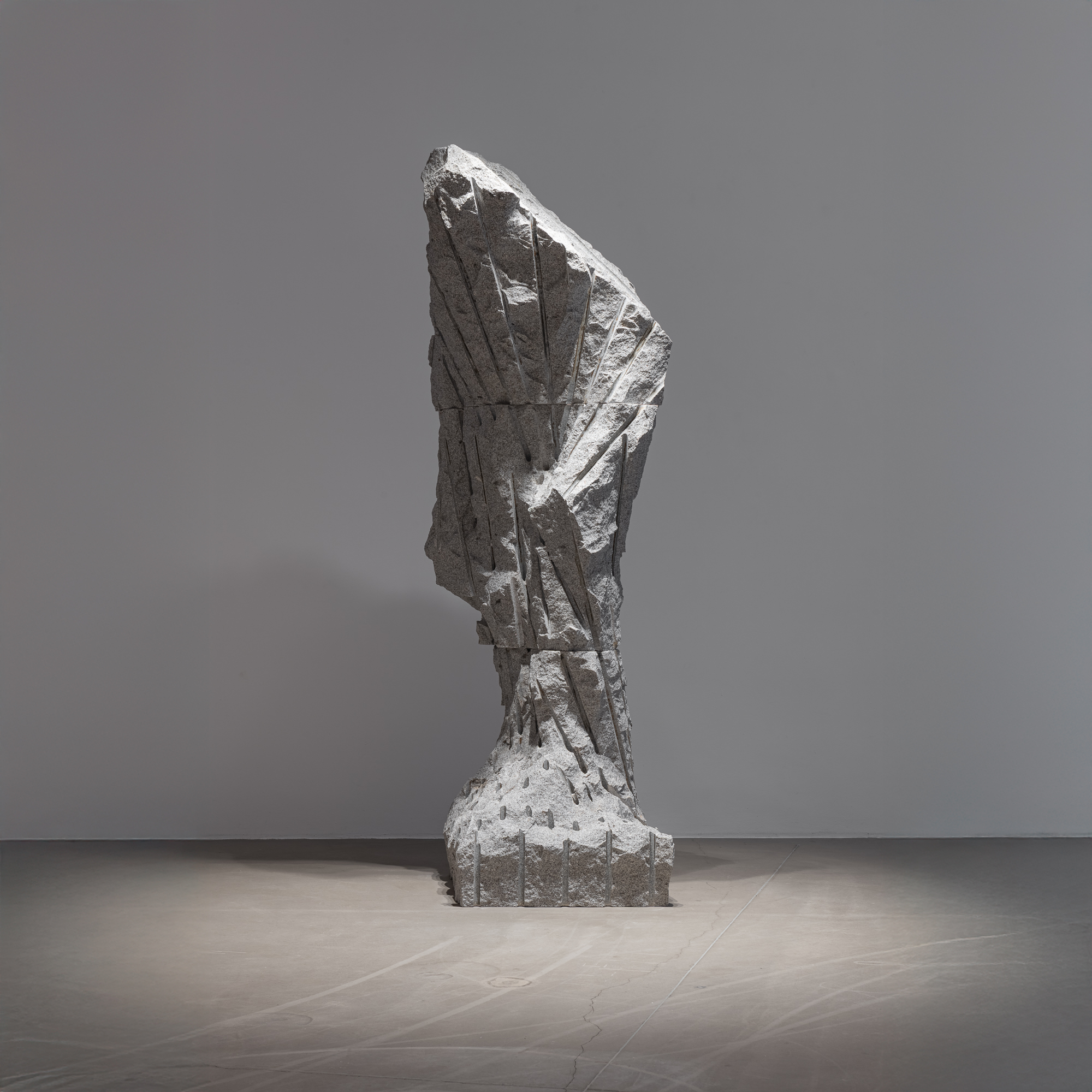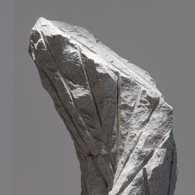 The One Who Breathes ilustruje túto dynamiku: forma v priebehu vzniku, sotva oddelená od žuly, ktorá ju ešte obsahovala, nesie stopy svojho vytrhnutia ako znaky minerálneho zrodu. Masa kameňa v procese ťažby si, poznačená priamymi vrtmi, zachováva stopy po oddelení. Socha sa javí ako prechodný stav, svedok napätia medzi nehybnosťou a pohybom, medzi už obsiahnutou formou a formou, ktorá sa rodí. Objavujeme otvorené bloky, rozštiepené plochy, naklonené objemy, kde kameň akoby váhal medzi zrútením a pohybom. Štefan Papčo vizualizuje zastavený moment širšieho procesu – procesu, v ktorom sa hmota odčleňuje, oslobodzuje a hľadá si novú vlastnú polohu. Sila diela pramení práve z „vyťaženého“ pocitu napätia. Napätia smerom k niečomu, čo zostáva mimo dosahu – pocitu ilúzie, sna, tvorivého prebudenia alebo hľadania dokonalosti.